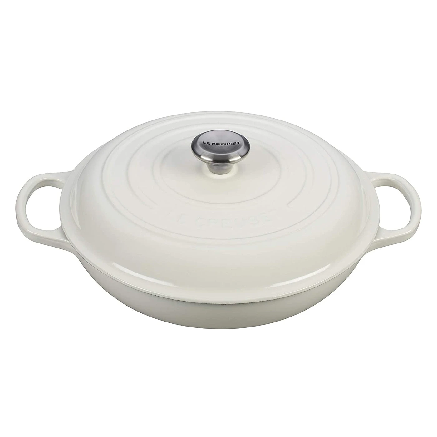 Le Creuset 5 Qt. Signature Braiser W/Stainless Steel Knob – White- Personalized Engraving Available