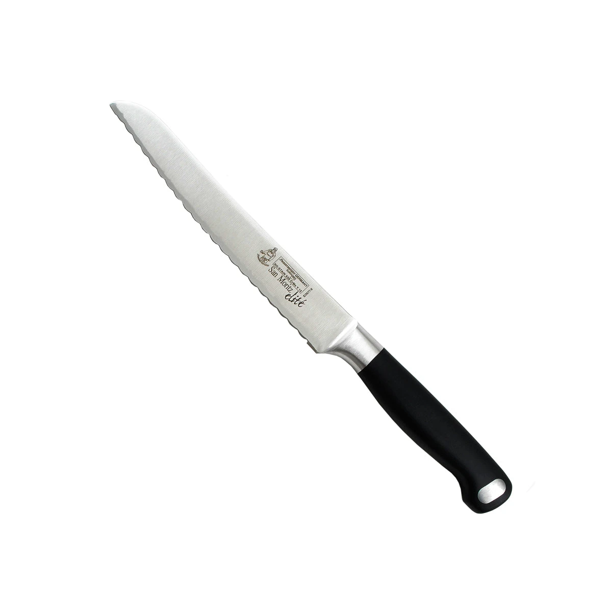 The Messermeister San Moritz Elite 6″ Reverse Scalloped Utility Knife will become your everyday go-to knife. The compact blade size and scalloped edge will allow you to use this blade to carve roasted chickens, slice hams, cheeses, soft skinned fruits and vegetables. It is great for cutting pastries, bagels and small cakes. Take it along on picnics to handle a multitude of cutting tasks. – E/2677-6 – 2 – A89-1